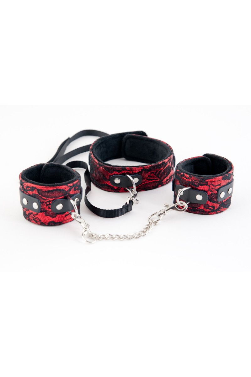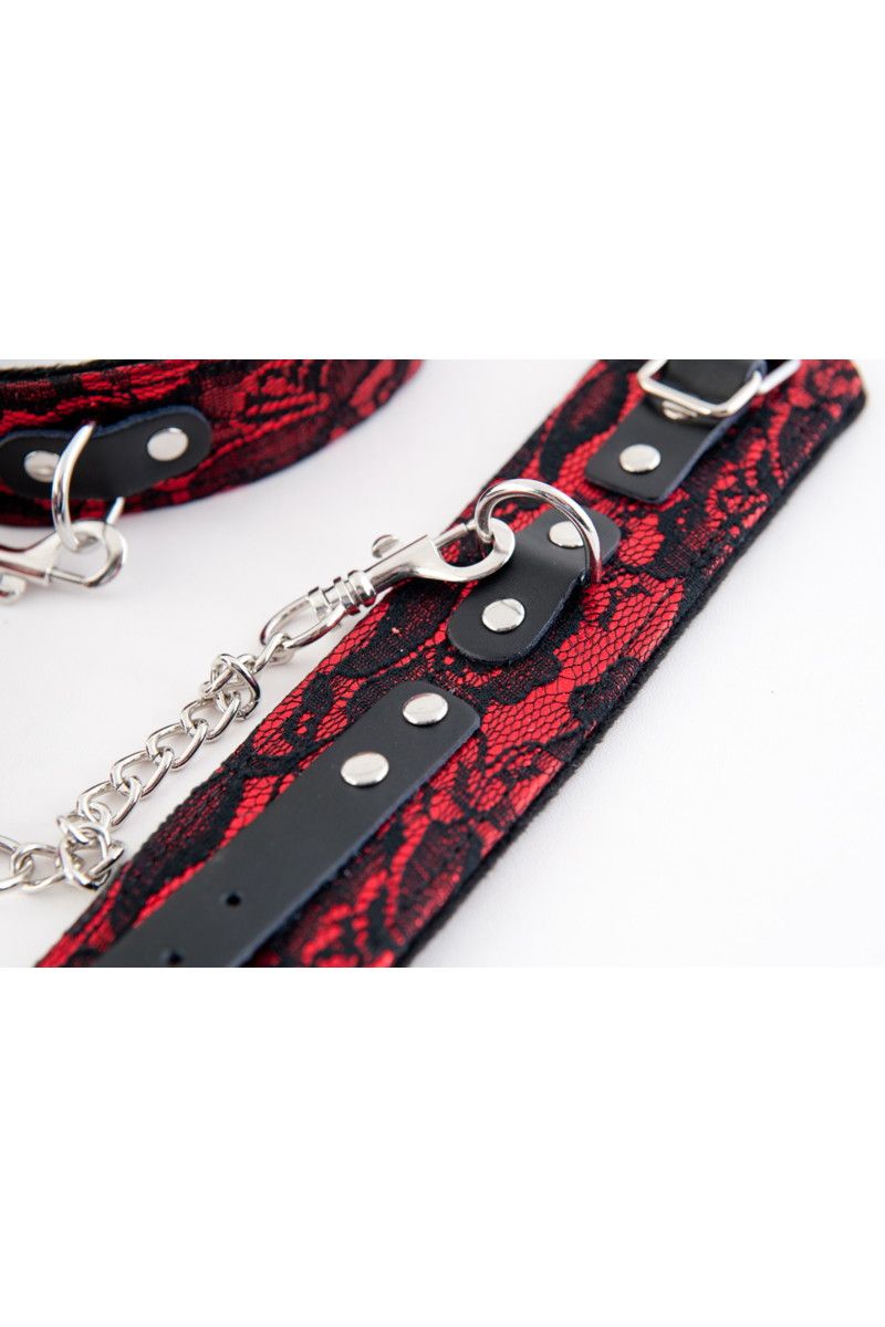 Кружевной набор красный: ошейник и наручники