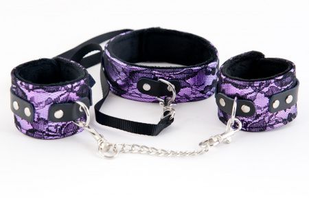 Кружевной набор TOYFA Marcus пурпурный: ошейник и наручники. 716013