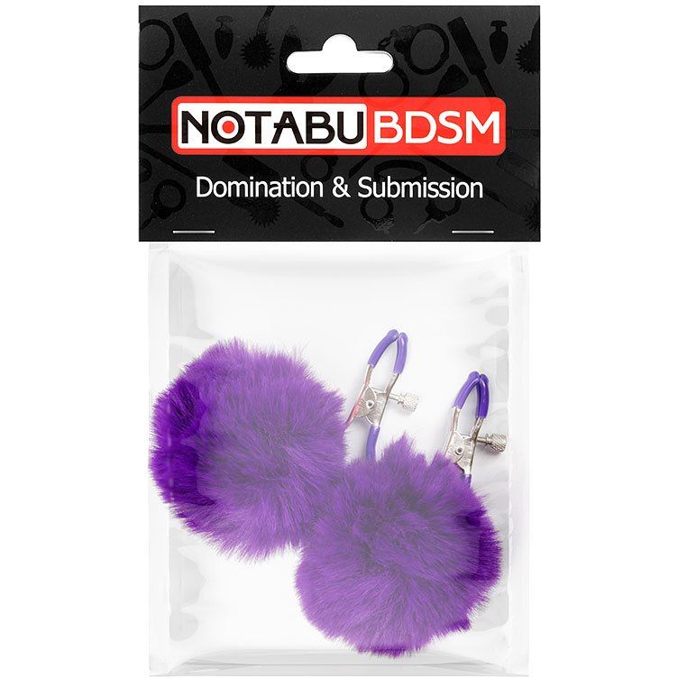 Ищете что-то новенькое и уникальное для своей коллекции БДСМ-аксессуаров? Тогда вам обязательно понравятся эти оригинальные зажимы для сосков с пушком в фиолетовом цвете от Notabu. Эти уникальные аксессуары украшены меховыми помпонами, добавляющими шарма и игривости вашим эротическим сессиям.