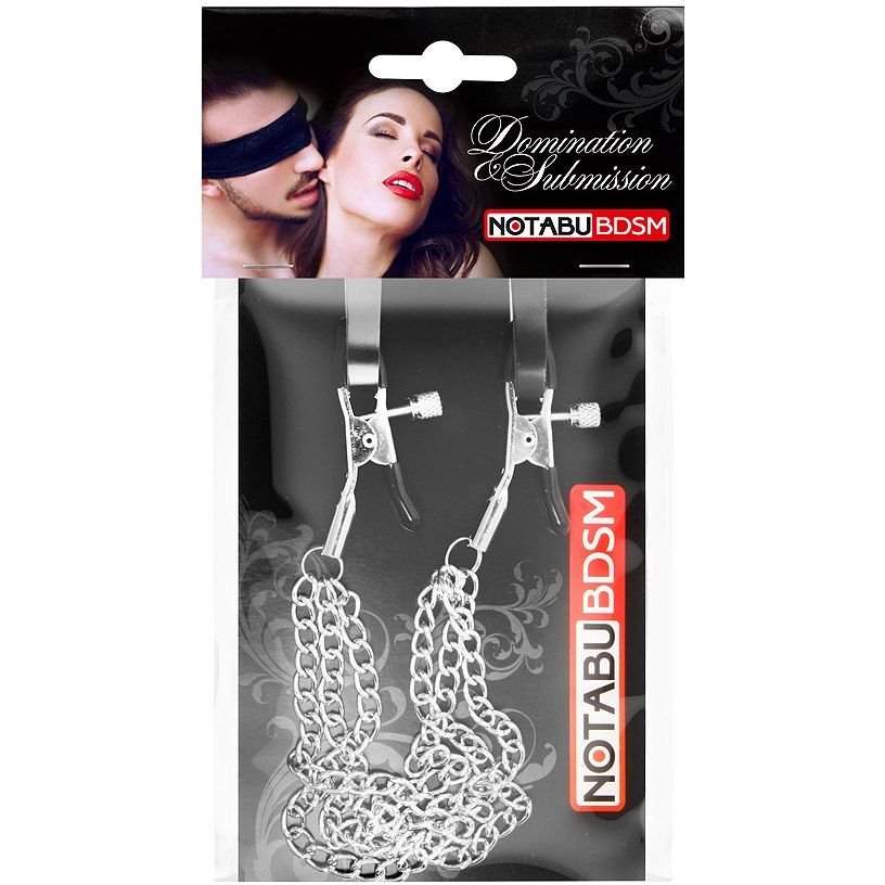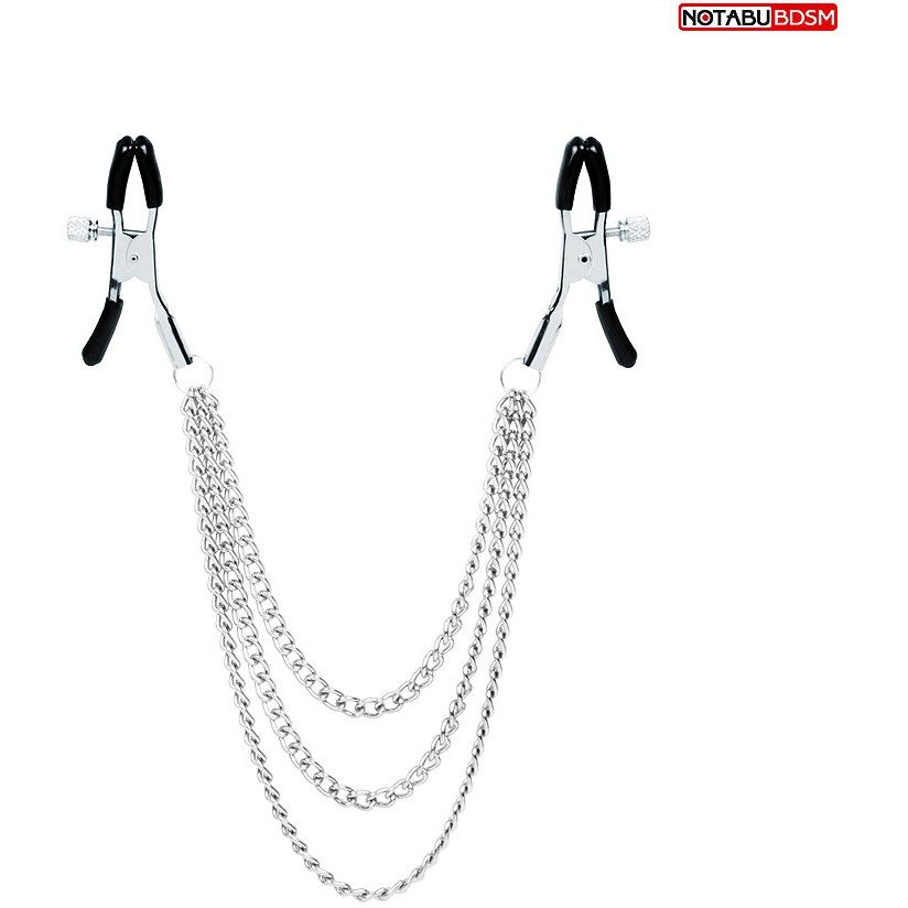 Изящные аксессуары для стимуляции сосков и усиления сексуального возбуждения. На концах зажимов имеются специальные эластичные накладки, препятствующие сильному сдавливанию и травмированию сосков. Зажимы соединены тремя лёгкими металлическими цепочками, дающими эффект утяжеления. На каждом изделии предусмотрен регулировочный винт, позволяющий контролировать силу сдавливания сосков. Интимные аксессуары могут использоваться соло или для парных любовных игр.Изделия просты в применении. Не требуют специального ухода. До и после использования зажимы рекомендуется обработать очищающим спреем с антимикробным эффектом.