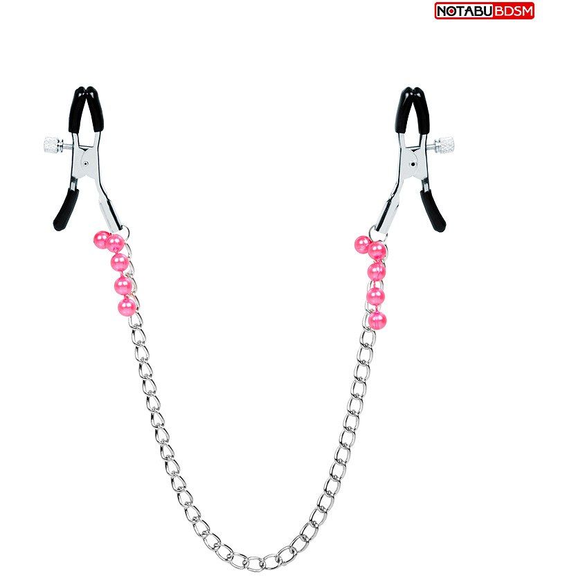 Изящные аксессуары для стимуляции сосков и усиления сексуального возбуждения. На концах зажимов имеются специальные эластичные накладки, препятствующие сильному сдавливанию и травмированию сосков. Зажимы соединены лёгкой металлической цепочкой и украшены подвесками из бусин, что даёт эффект утяжеления. На каждом изделии предусмотрен регулировочный винт, позволяющий контролировать силу сдавливания сосков. Интимные аксессуары могут использоваться соло или для парных любовных игр. Изделия просты в применении. Не требуют специального ухода. До и после использования зажимы рекомендуется обработать очищающим спреем с антимикробным эффектом.