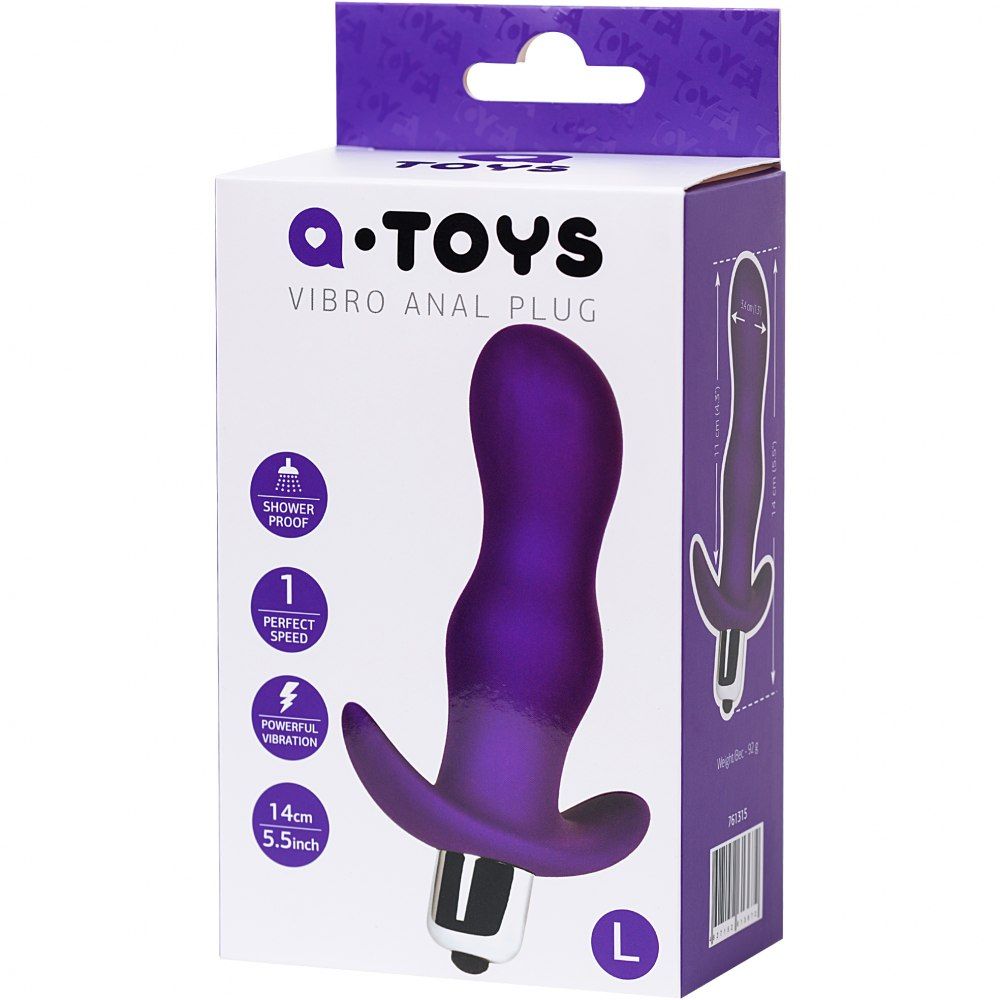 Анальная пробка с вибрацией A-Toys by TOYFA размера L, влагостойкая, фиолетовая, 14 см, Ø 3, 761315