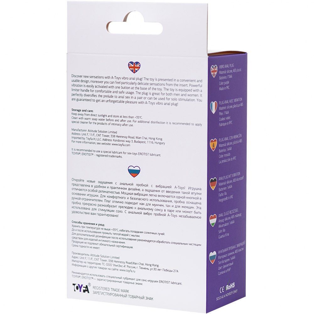 Не упустите возможность приобрести анальную пробку с вибрацией A-Toys by TOYFA размера L по привлекательной цене 299 рублей. Этот аксессуар станет незаменимым помощником в ваших интимных играх и подарит вам множество незабываемых моментов удовольствия.