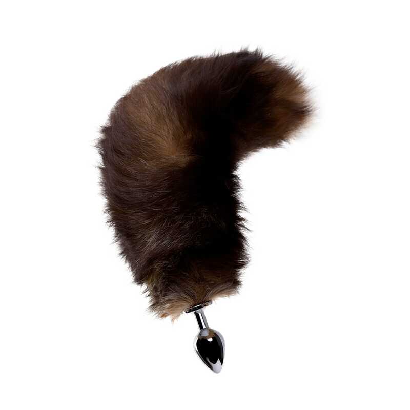 Анальная металлическая втулка с рыжим лисьим хвостом