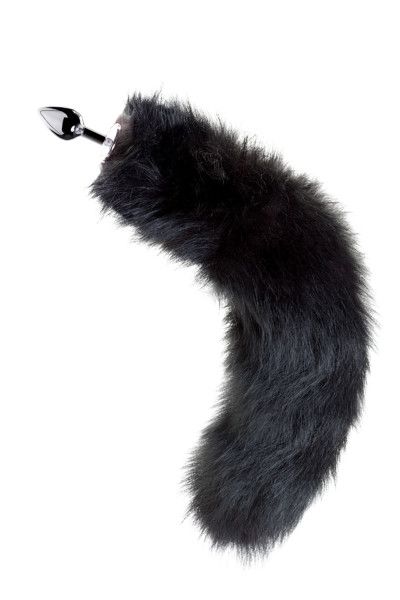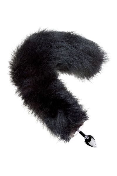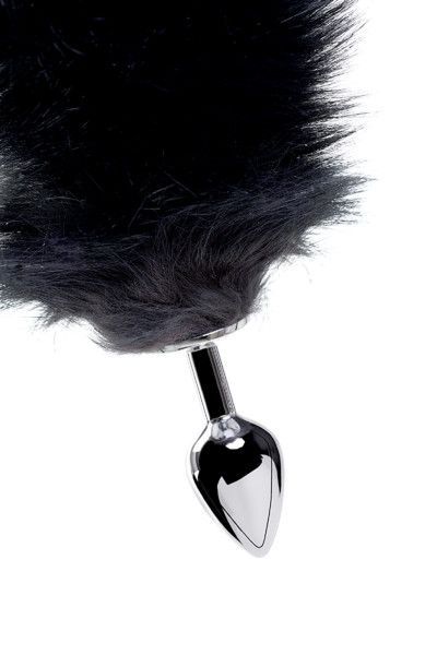 Анальная втулка металлическая с черным лисьим хвостом