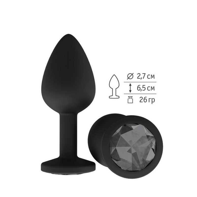Анальная втулка силиконовая черная с черным кристаллом, 518-09 black-DD