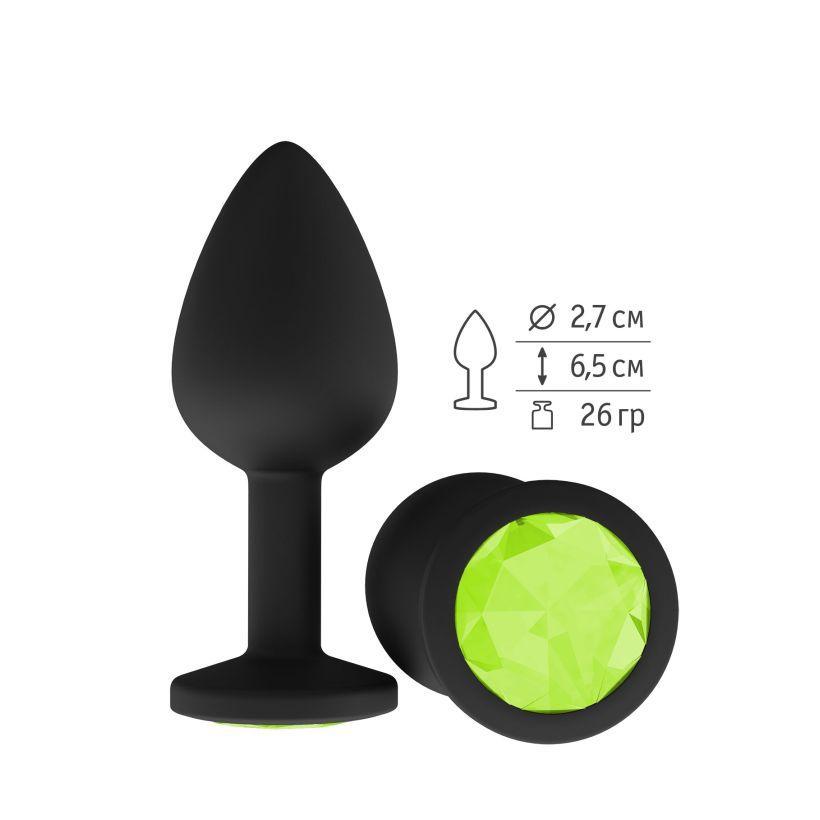 Анальная втулка силиконовая черная с кристаллом цвета лайма