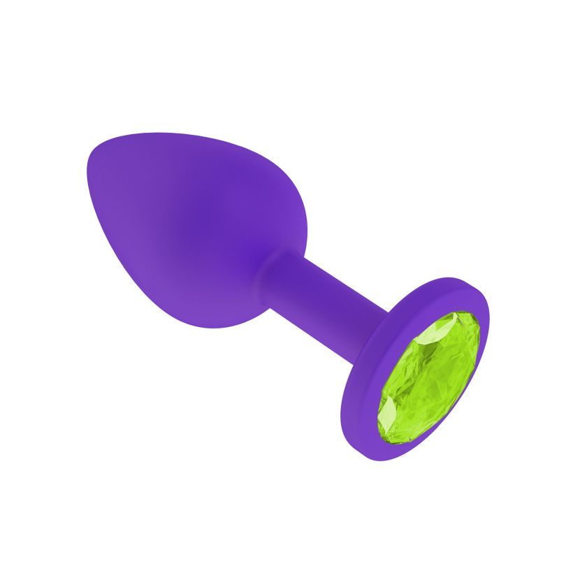 Анальная втулка силиконовая фиолетовая с кристаллом цвета лайма