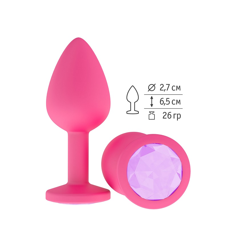 Анальная втулка силиконовая розовая с сиреневым кристаллом