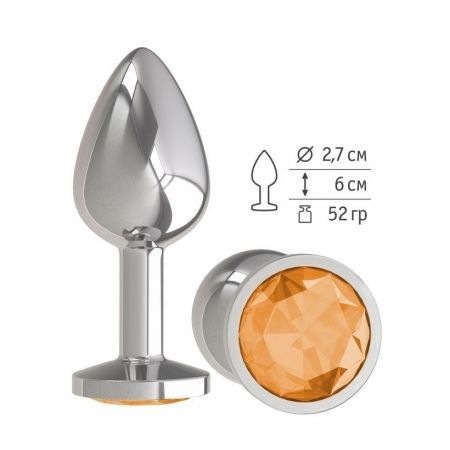Анальная втулка Silver с оранжевым кристаллом