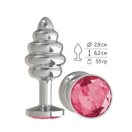 Анальная втулка Silver Spiral с малиновым кристаллом