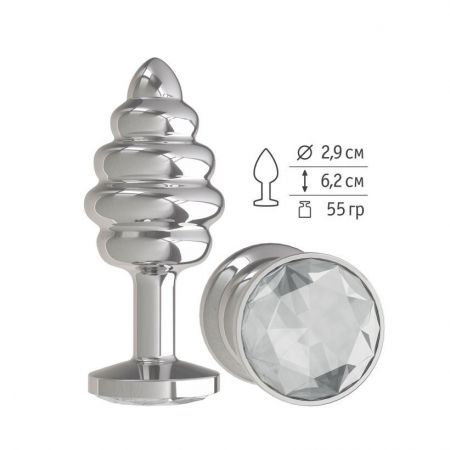 Анальная втулка Silver Spiral с прозрачным кристаллом