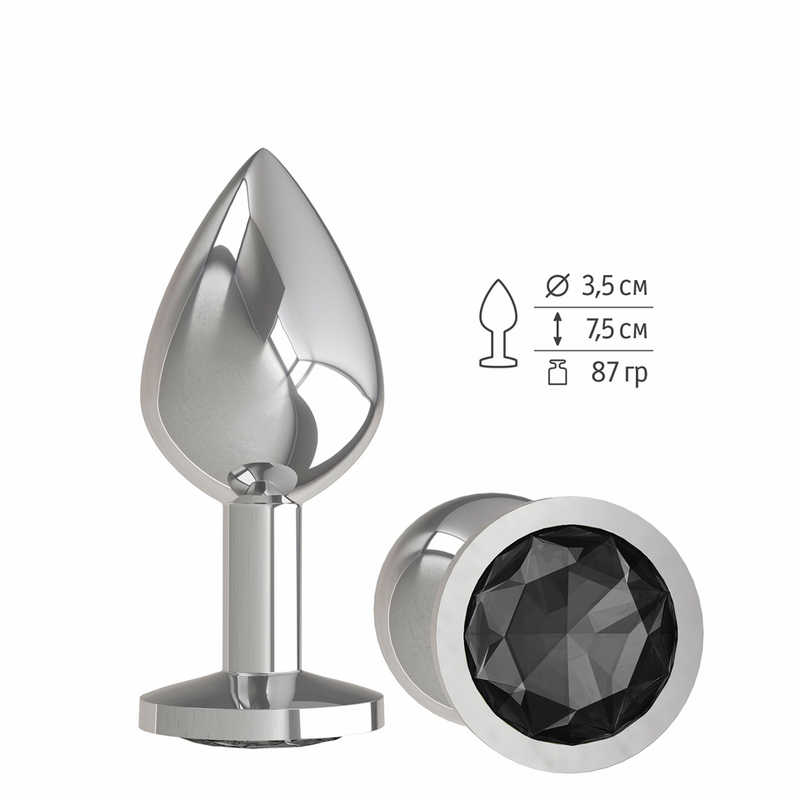 Анальная втулка Silver средняя (круглая) с чернымым кристаллом