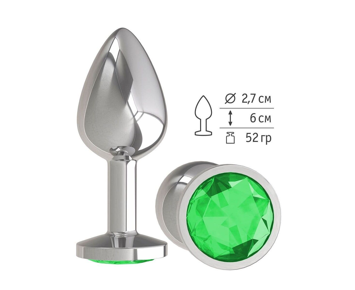 Анальная втулка Silver средняя (круглая) с зеленым кристаллом