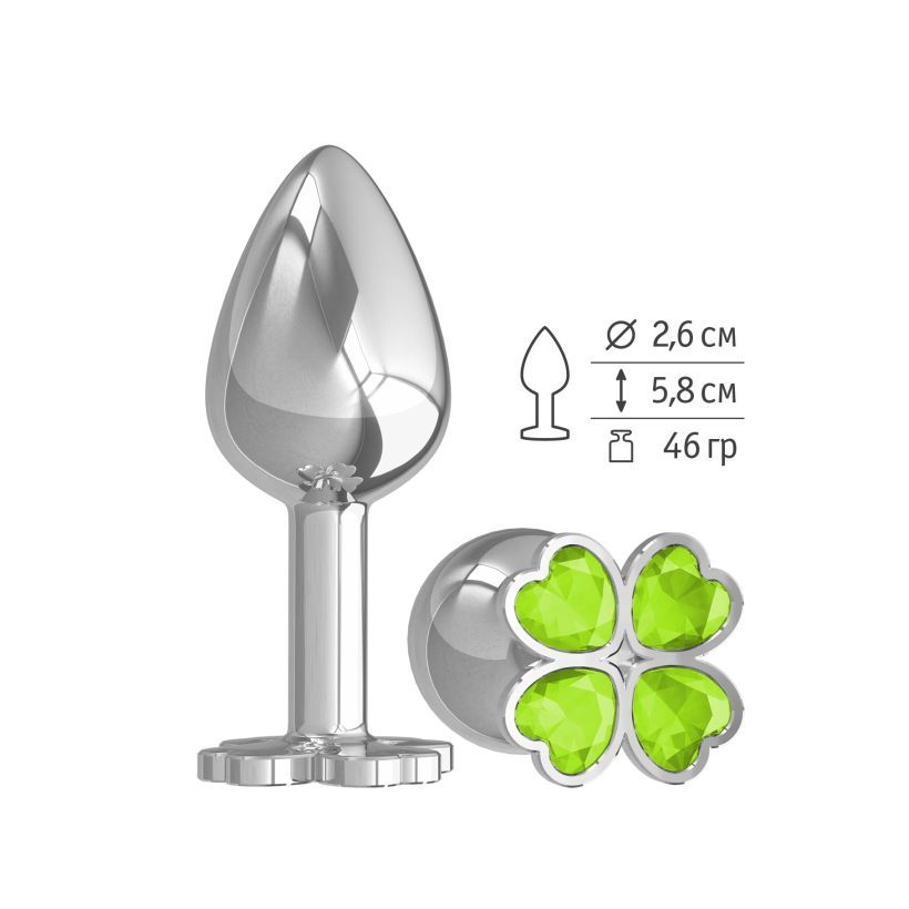 Втулка серебро (клевер) с кристаллом цвета лайма