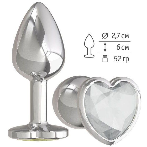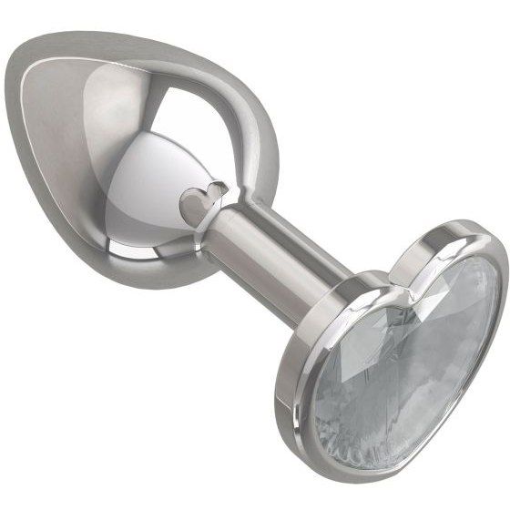 Анальная втулка «Silver» с прозрачным кристаллом в форме сердца от компании Джага-Джага, цвет серебристый, 514-01 WH DD