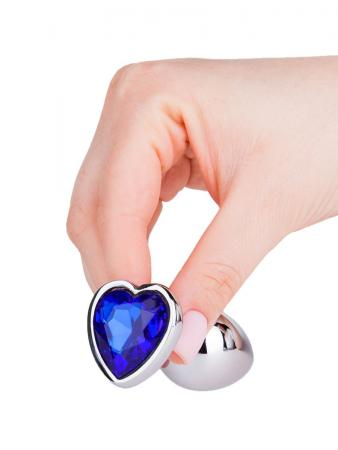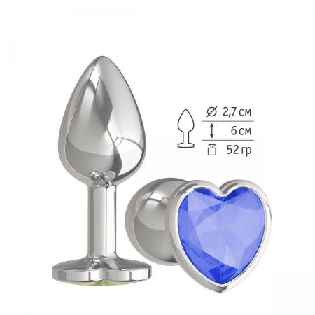Анальная втулка «Silver» с синим кристаллом-сердцем от компании Джага-Джага, цвет серебристый, 514-07 BL DD