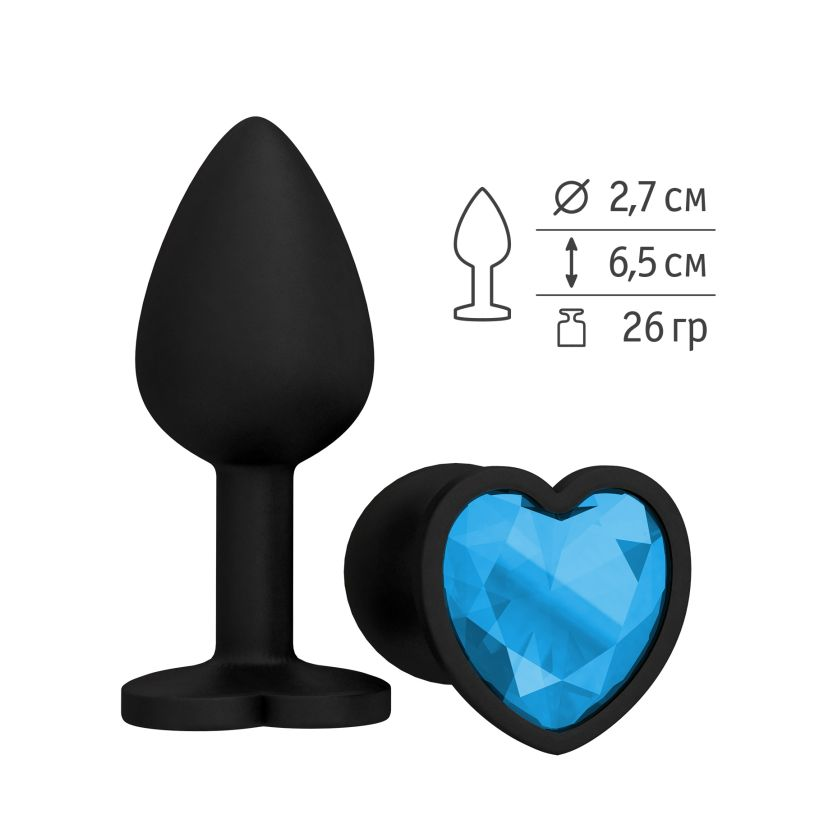 Втулка силиконовая черная с голубым кристаллом, 508-05 aqua-DD