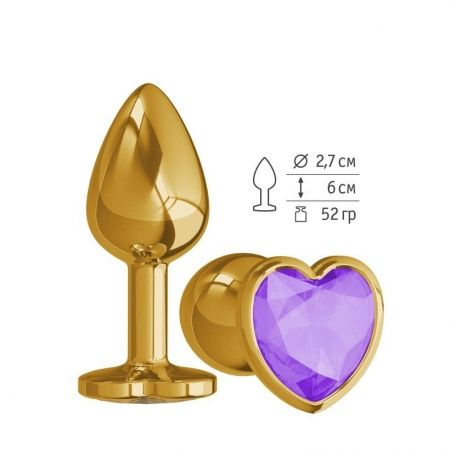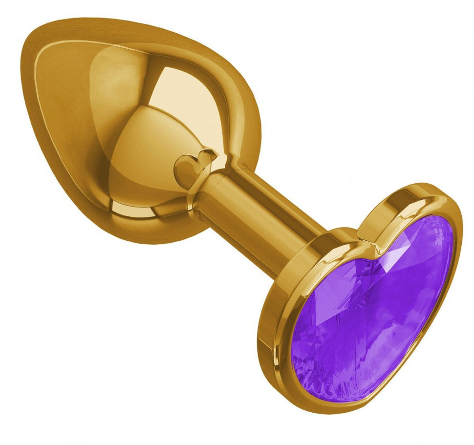 Анальная втулка «Gold» средняя с фиолетовым кристаллом от компании Джага-Джага, цвет золотой, 510-08 PR DD