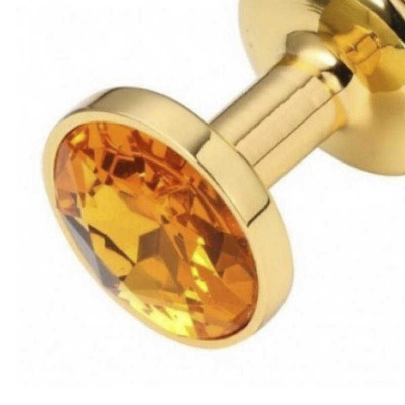 Анальная втулка «Gold Spiral» с оранжевым кристаллом от компании Джага-Джага, цвет золотой, 512-10 ORANGE-DD