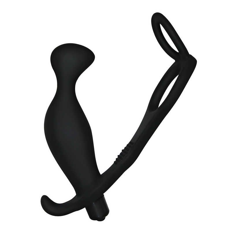 Мужской анальный стимулятор с двумя утяжками (на пенис и мошонку) Ass-Rasca Prostate Vibrating Plug Combo с вибрацией. Изготовлен из черного силикона без вредных примесей (фталатов). Конструкция анального стимулятора подразумевает одновременное воздействие на простату и задержку семяизвержения. Изделие оснащено вибропулей с 10 режимами вибрацией, которые переключаются одной кнопкой.