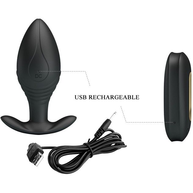 Стильный черный анальный стимулятор выполнен из силикона. Обладает 12 режимами вибрации. Удобно управляется при помощи пульта дистанционного управления. Имеет ограничительное основание для безопасного использования. Общая длина длина - 8,8 см, рабочая длина - 7,8 см, диаметр - 3,4 см. Сама пробка и пульт заряжаются от usb (в комплекте). Для сохранности материала рекомендуется использовать с лубрикантом на водной основе.