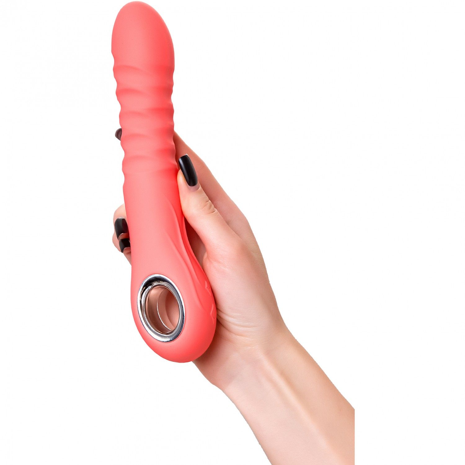 Вибратор Flox из коллекции Flovetta – это функциональный сексуальный девайс с функцией Up&Down. Его мощный мотор имеет двенадцать режимов работы и позволяет игрушке совершать толчки, имитирующие настоящие фрикции. Длина шага – 2 см. Это приятно разнообразит эротические игры с партнером, а также будет отличным дополнением к самостоятельной мастурбации. Для дополнительной стимуляции вагинальных стенок по всей длине устройства нанесен выразительный рельеф, головка также немного увеличена в объеме. Комфортное положение в руке обеспечивает текстурная поверхность и кольцо-рукоять со стильной металлической деталью. Управлять работой игрушки можно с помощью двух простых кнопок на корпусе. Аккумулятор девайса перезаряжается с помощью USB-кабеля (поставляется в комплекте). Игрушка изготовлена из высококачественного силикона, гладкого и бархатистого на ощупь. Для максимального скольжения и более ярких и насыщенных ощущений используйте с вибратором лубриканты на водной и гибридной (только силикон + вода) основе. Общая длина девайса – 21,5 см, рабочая длина – 7,5 см, максимальный диаметр – 3,5 см. Рекомендации по уходу: Для обработки изделия используйте той-клинер в формате спрея. После обработки рекомендуется насухо протереть безворсовым одноразовым полотенцем. Храните игрушку в индивидуальном мешочке из не окрашивающего материала.