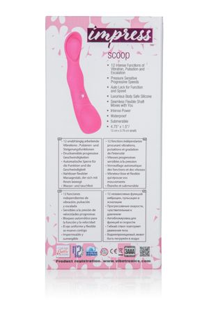 С его компактным и эргономичным дизайном, Impress Scoop легко держать в руке и управлять им. Вы сможете настроить интенсивность вибрации, чтобы найти идеальный ритм, подходящий именно вам. Благодаря этому уникальному вибромассажеру вы сможете полностью расслабиться и погрузиться в море блаженства.
