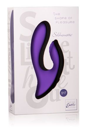 Вибромассажер с клиторальной стимуляцией SILHOUETTE S17 перезаряжаемый эргономично изогнутый для осуществления любых Ваших фантазий. Безупречная форма и совершенный дизайн отличительная особенность игрушек для наслаждения из новой коллекции SILHOUETTE от California Exotic Novelties. 10 функций вибрации, пульсации и эскалации разнообразят гамму ощущений. Нарастающие интенсивные скорости постепенно увеличивают степень удовольствия. Блокировка для путешествий, чтобы снять с блокировки - нажать и удерживать обе кнопки в течении 1-2 секунд: поставить на блокировку повторить действия. Нижняя кнопка - включение вибрации, верхняя - переключение функциональных режимов. Удержанием верхней кнопки увеличивается скорость выбранной функции. Для уменьшения скорости удерживайте нижнюю кнопку. Выключение - одно нажатие нижней кнопки. Невероятно интенсивная вибрация по всей площади вибромассажера, время беспрерывной работы на низкой скорости 2 часа; на высокой - 40 минут. Зарядка USB в комлекте, полный заряд за 2 часа. Бесшумный, 100% водонепроницаемый, возможно погружать в воду. Цвет: Фиолетовый. Размер: длина ствола - 11,5 cm; диаметр - 3,25 cm; длина клиторального стимулятора - 6,25 cm: диаметр - 3,25 cm. Материал: SILICON - шелковистый, гладкий, гипоаллергенный. Производитель: California Exotic Novelties, США.