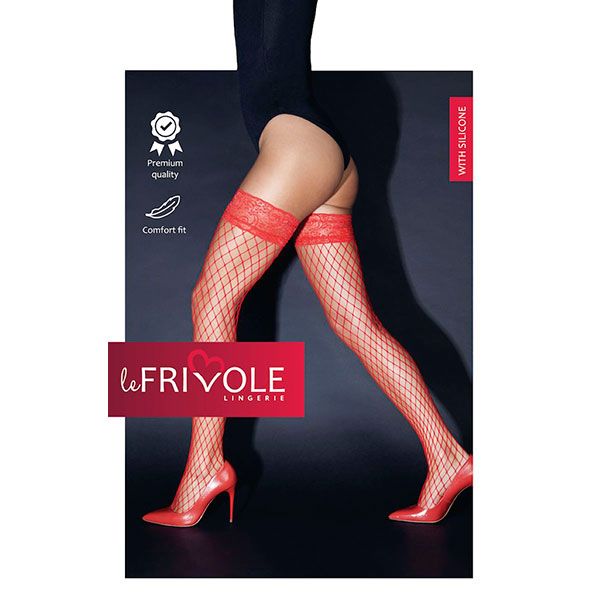 Бренд: Чулки красные в крупную сетку с кружевной резинкой на силиконе, 04818S/M